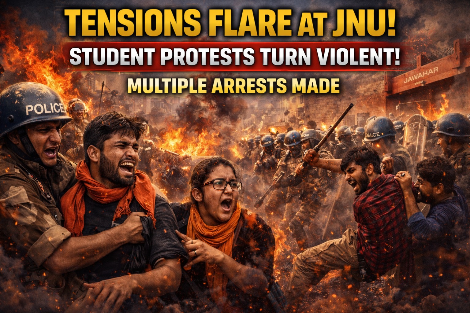 Protests at Jawaharlal Nehru University (JNU) escalated sharply late Thursday and into early Friday after clashes broke out between students and police during a planned march. Authorities confirmed multiple arrests following the unrest, which left several students and police personnel injured.